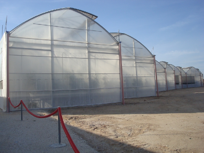 Наши теплицы, покрытые рифлёным поликарбонатом, подходят для сухих или очень жарких местоположений, и выдерживают сильные ветры и песчаные бури. Для очень низких температурных условий мы поставляем сотовый поликарбонат (от 4 мм до 16 мм), чтобы поднять уровень изоляции и соответственно понизить потребность теплицы в энергии.